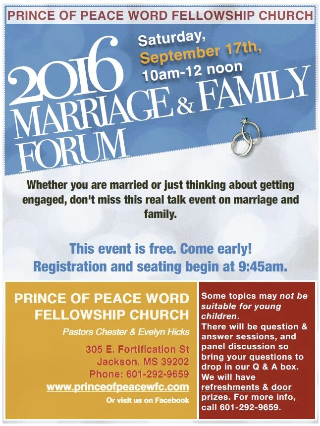 This event for couples and singles. Whether you are married, divorcing, separated or just thinking about getting engaged, don't miss this real talk event on marriage and family.